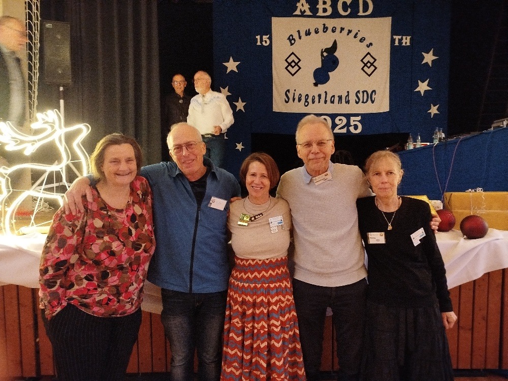 | – 13. Dezember 2025 – Vier Students der Bonn Square Dance Group machten ihre ersten Tanz-Erfahrungen beim Besuch eines anderen Squaredance Clubs beim ABC Tanz der Blueberries Siegerland SDC. |